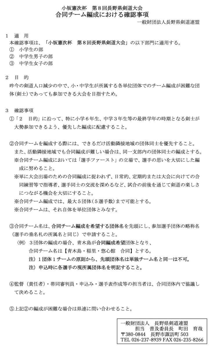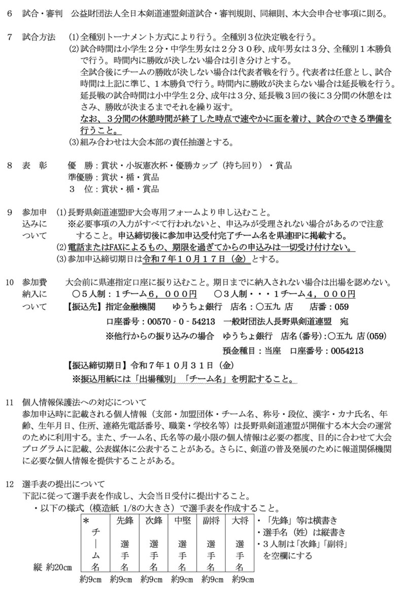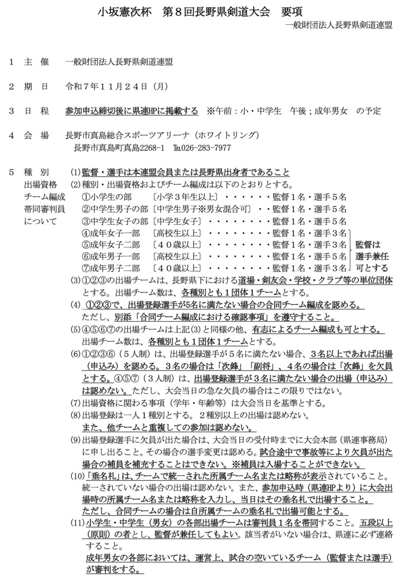 小坂憲次杯 第7回長野県剣道大会 要項