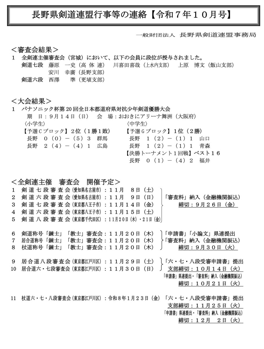 長野県剣道連盟行事等の連絡 10月号 (2025)