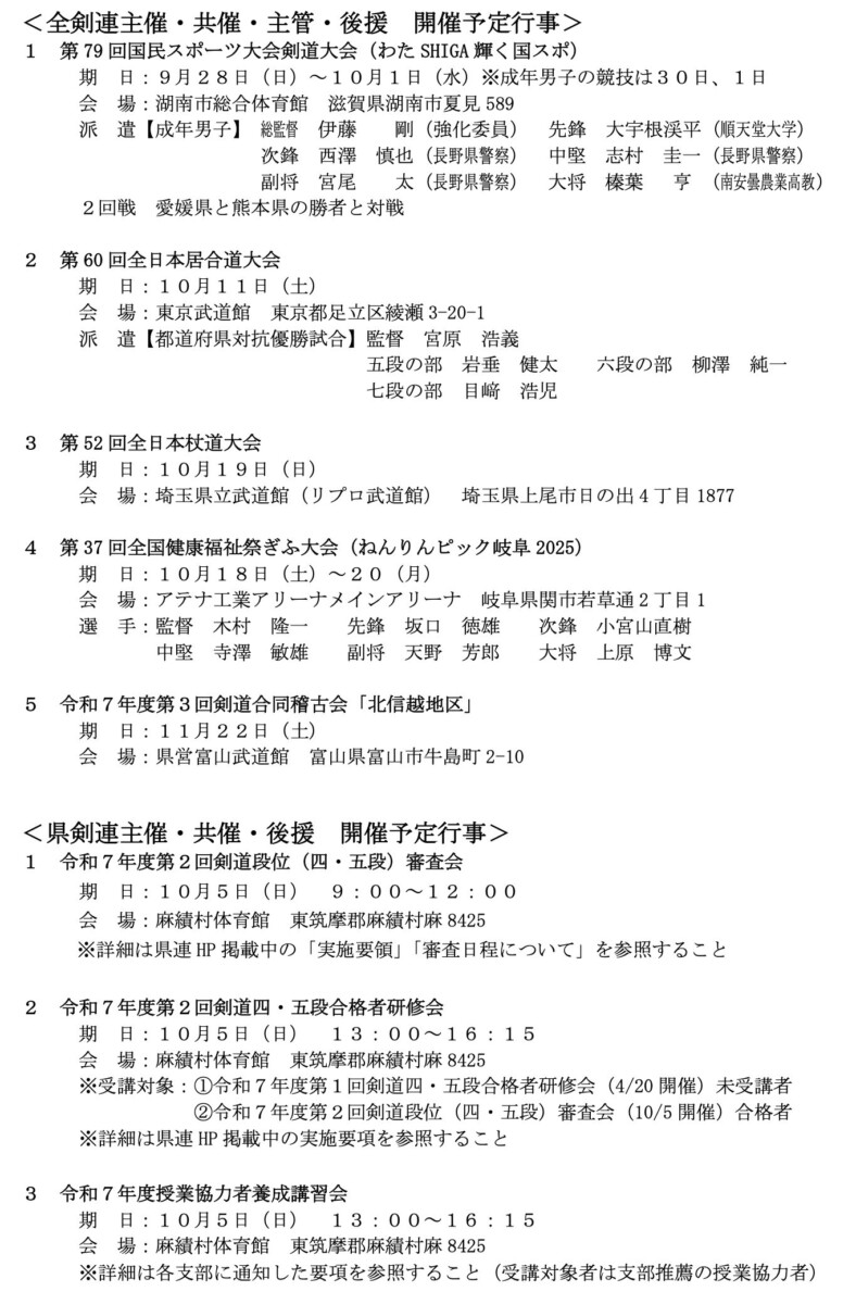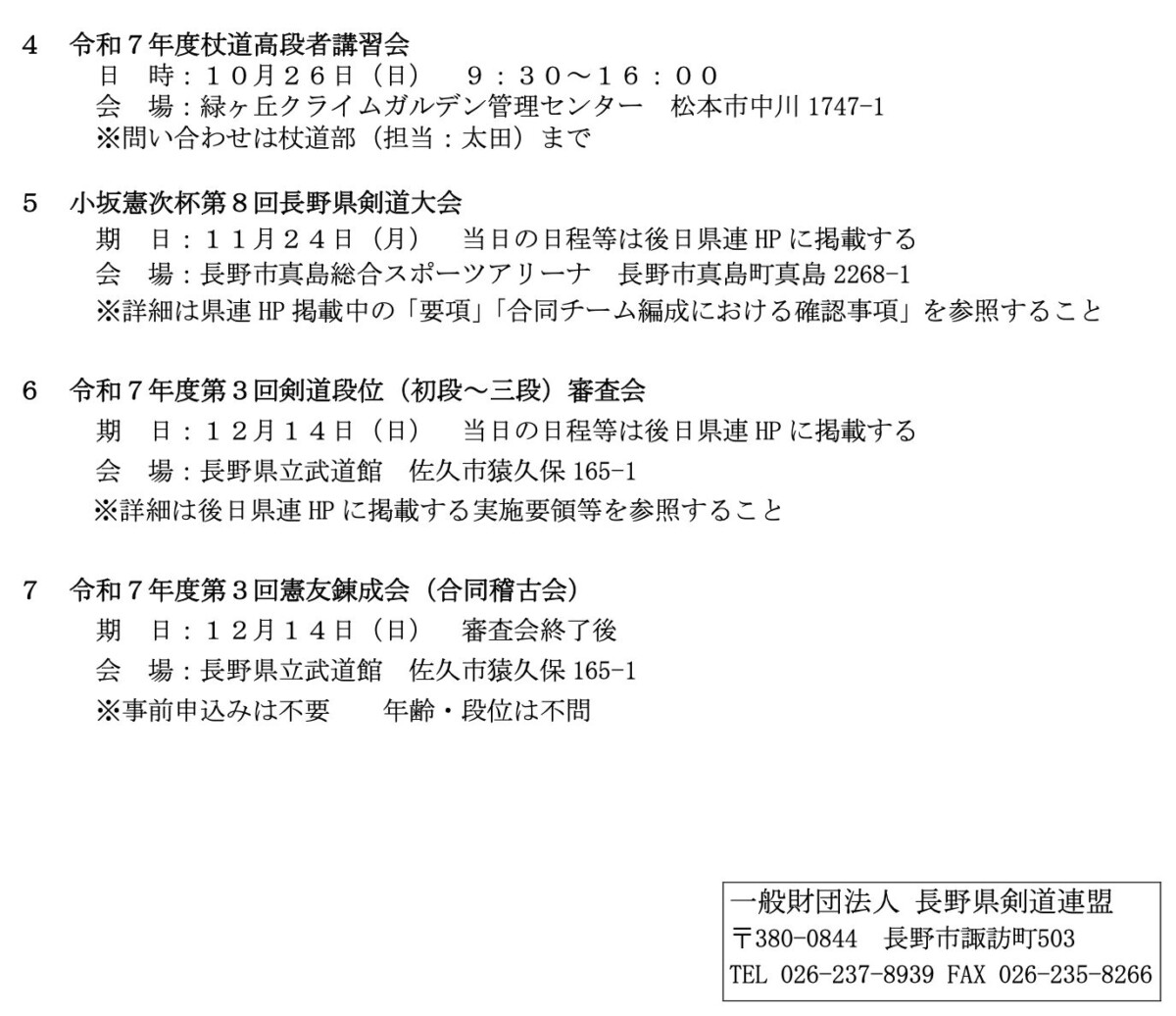 4. 長野県剣道連盟行事等の連絡 10月号 (2025)