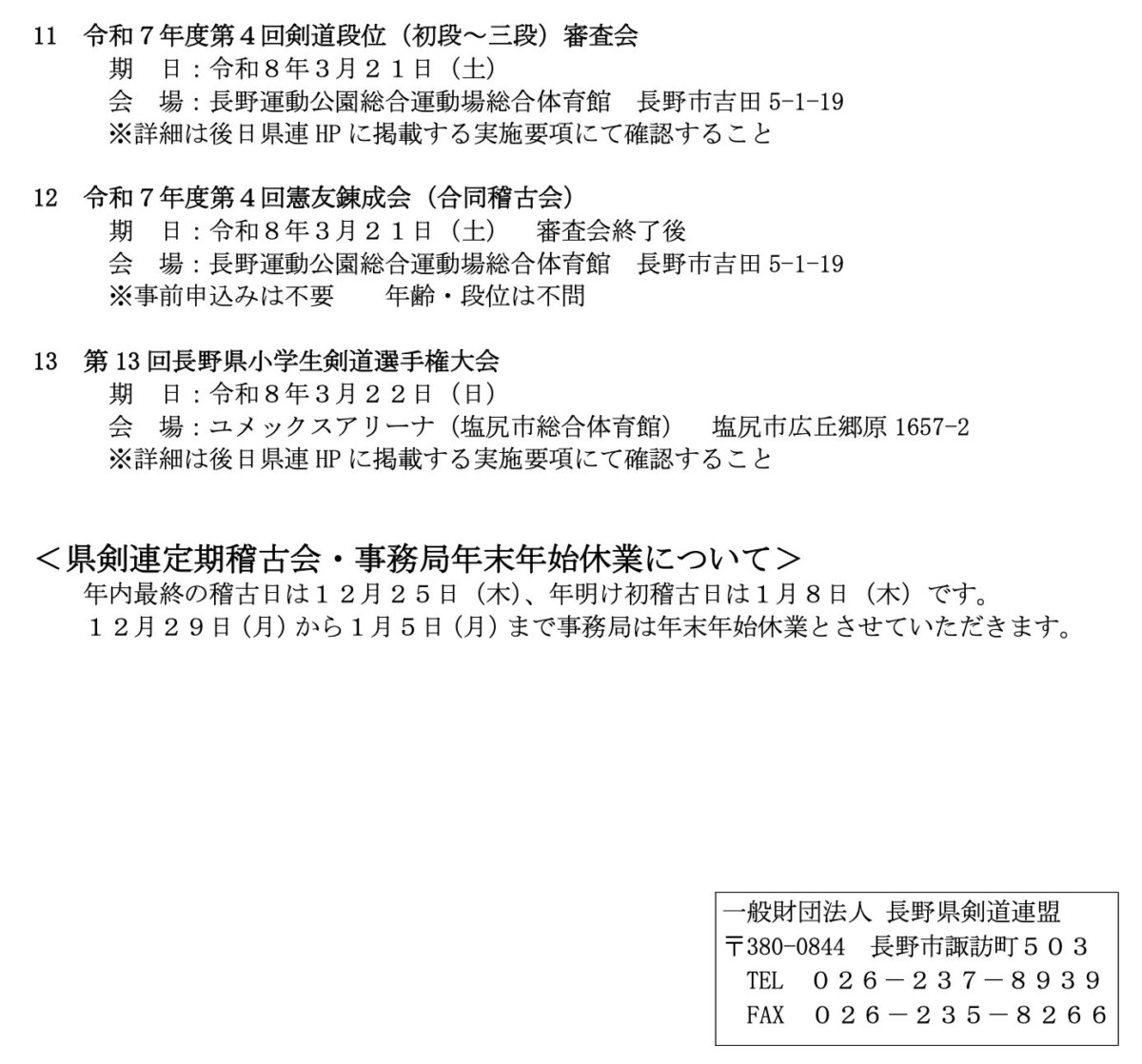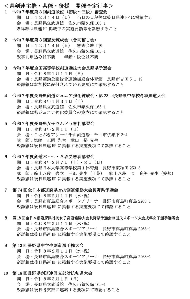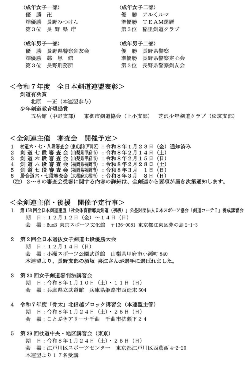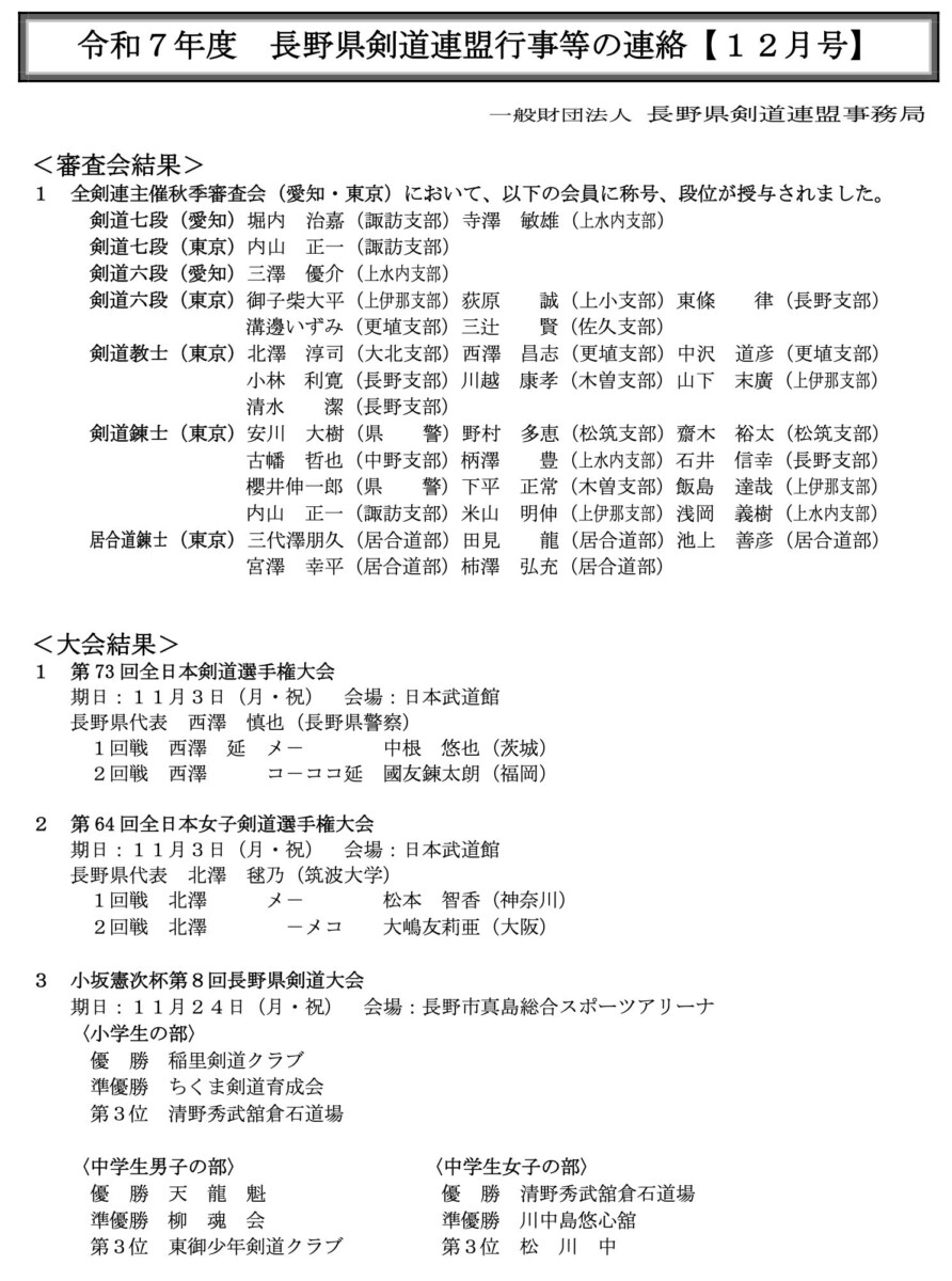 長野県剣道連盟行事等の連絡 12月号 (2025)