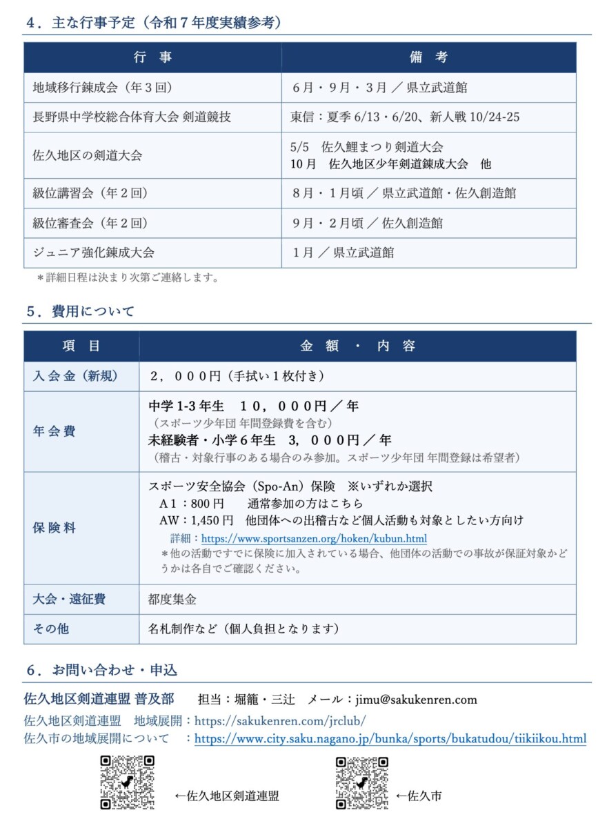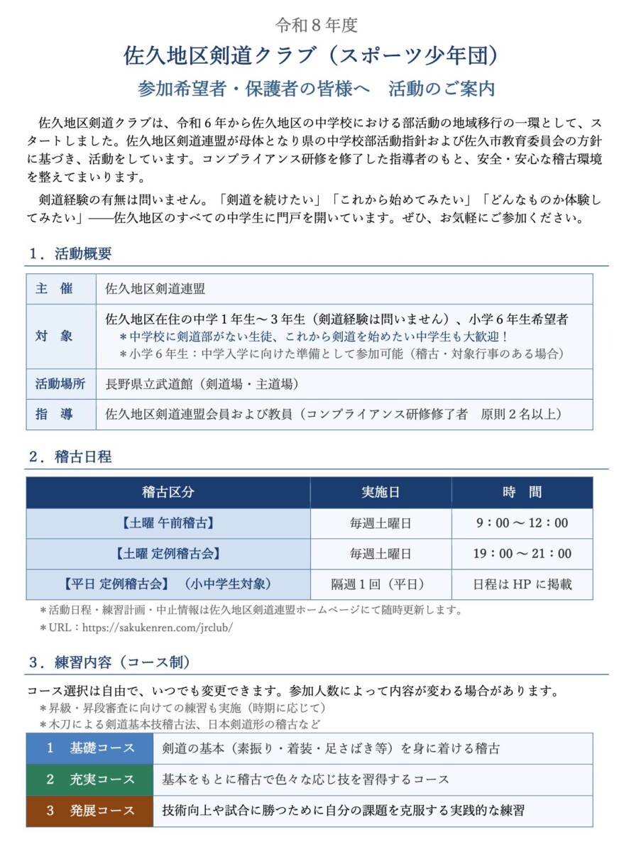 令和8年度 佐久地区剣道クラブ(スポーツ少年団)ご案内