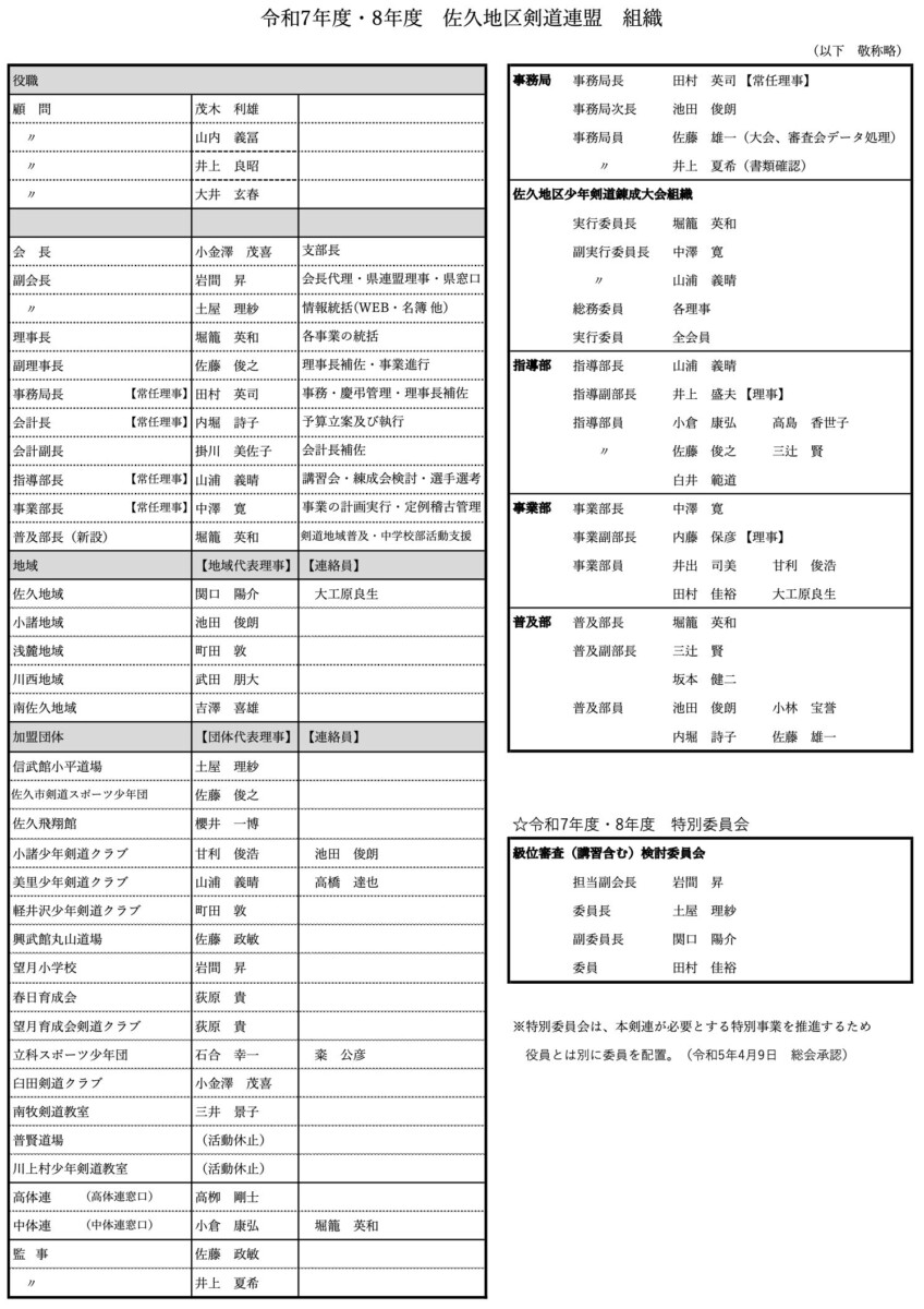 令和7年度・8年度 佐久地区剣道連盟 組織
